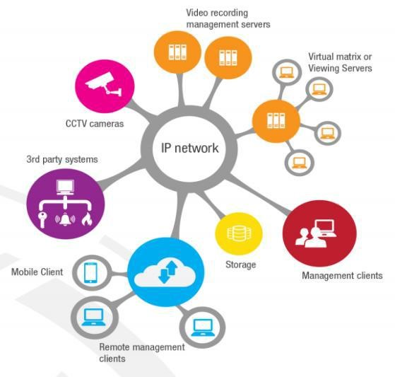 Suited for situations that require very large camera populations with complete multi-tier management control. The open architecture enables I.P cameras, recording and viewing servers as well as third party systems suited to a particular application to be integrated seamlessly.